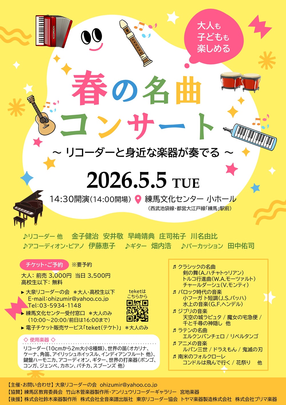 ◆ 料金/4,000円(合奏会のみは3,000円、ミニ コンサートのみは2,000円)