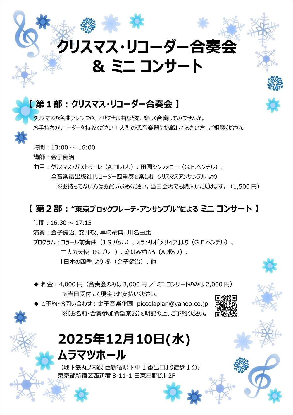 主催・お問い合わせ/東京リコーダー協会 東日本本部